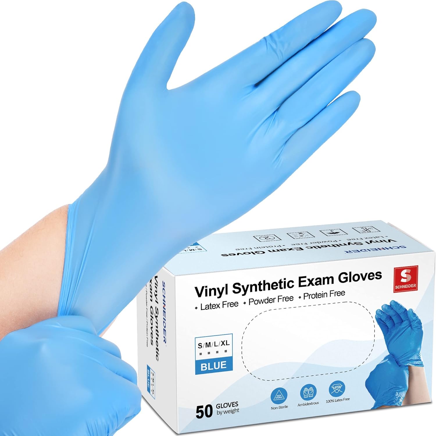 Schneider Vinyl Synthetic Exam Gloves, 4 Mil, Latex Free Disposable Gloves for Medical, Cooking, Cleaning, and Food Prep